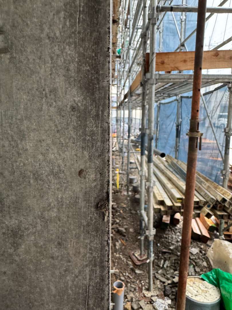 型枠解体後のチェックとして壁がはらんでいないかは重要です。