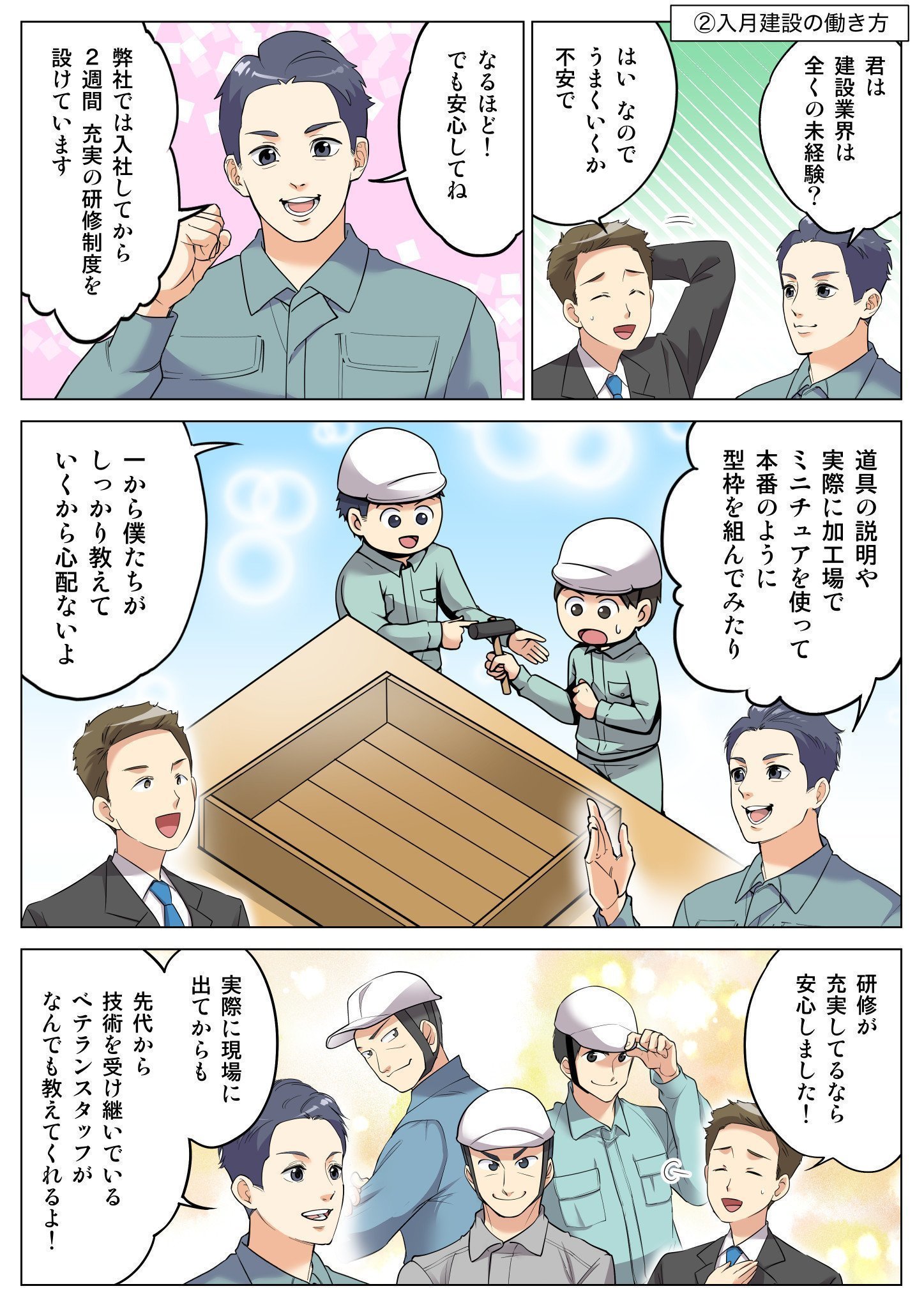 私は未経験からの入社でした。そのため、入社直後はとても不安でしたが、驚くほど教育体制がしっかりしていたので、すぐに馴染むことができました。今では小さな現場の責任者を任されるほどになり、成長しやすい環境だなと実感しています。