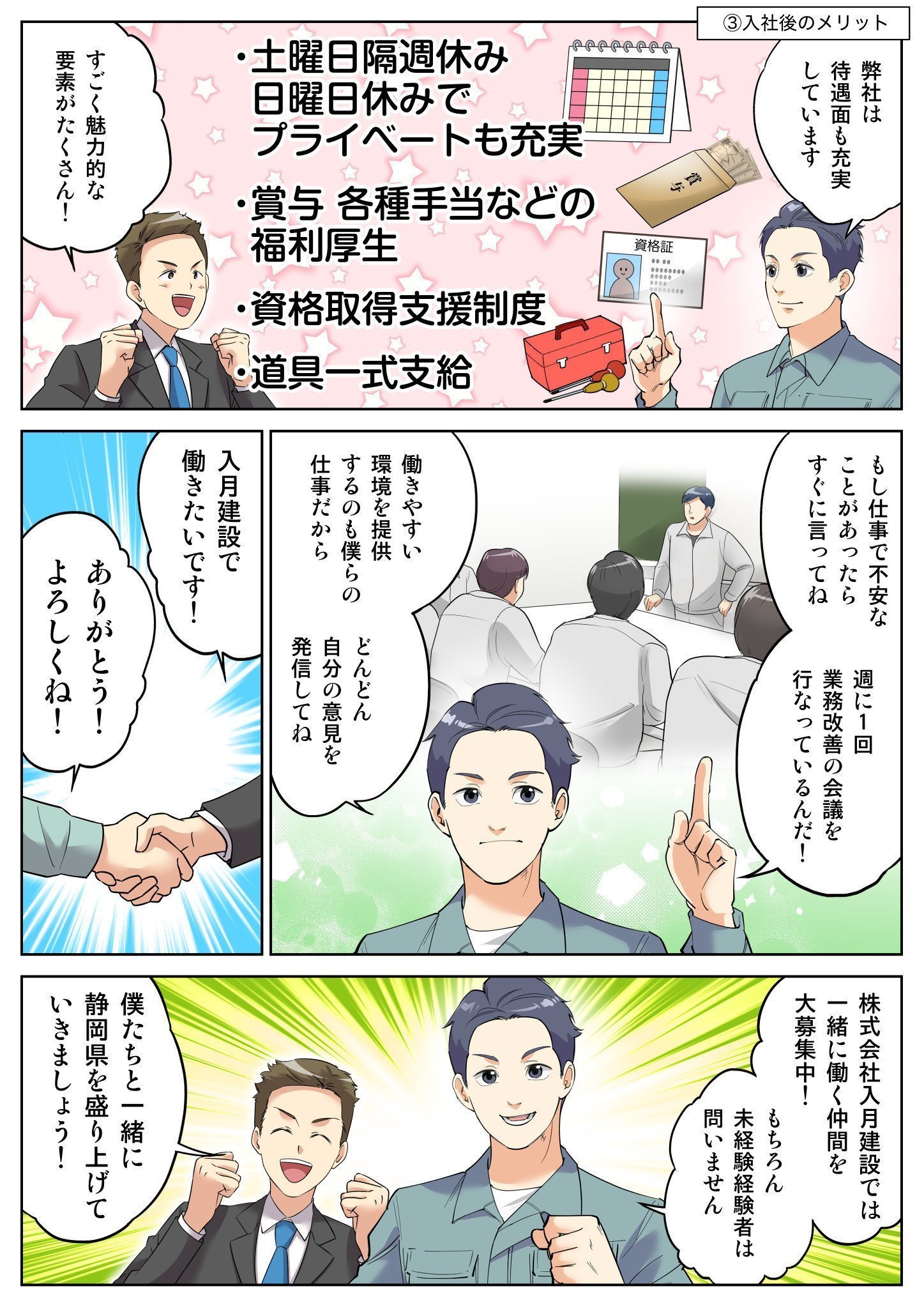 私は職長をしています。入月建設は自由な社風で、色々なことに積極的にチャレンジさせてくれる環境です。自分がレベルアップしていくにはもってこいの職場だと思います。何事にも挑戦したい方をお待ちしています。